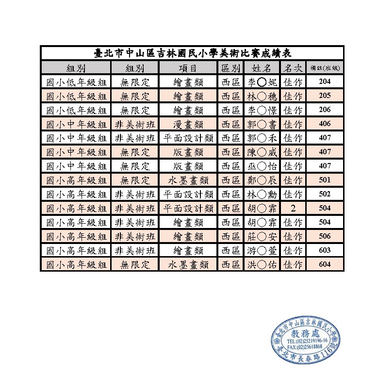恭喜以上得獎者,日後將於兒童朝會時進行臺北市政府教育局獎狀的頒發,屆時會再予以通知!