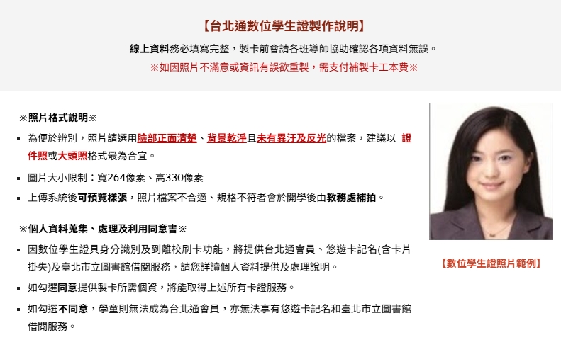 2.因應本市鮮奶週報政策,數位學生證的製程已前提,近期將電話聯繫尚未繳交或需補繳照片的家長,期能於開學當週順利領取鮮奶,煩請於8/15(五)前將照片電子檔寄送至教務處註冊組信箱 (peiyu6615@gmail.com),以利卡片製作。