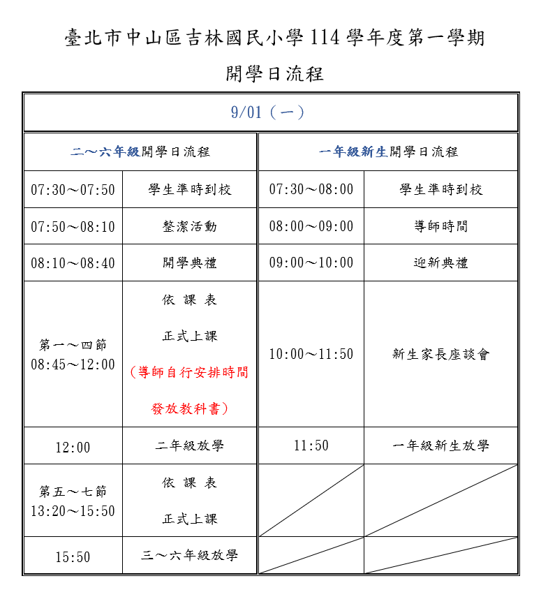 ※課後班、課外社團開課:開學日9/01(一),社團請詳閱上課須知;