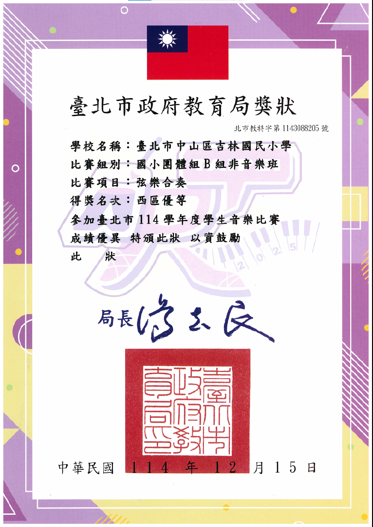 本校弦樂團於114學年度臺北市學生音樂比賽榮獲弦樂合奏西區優等